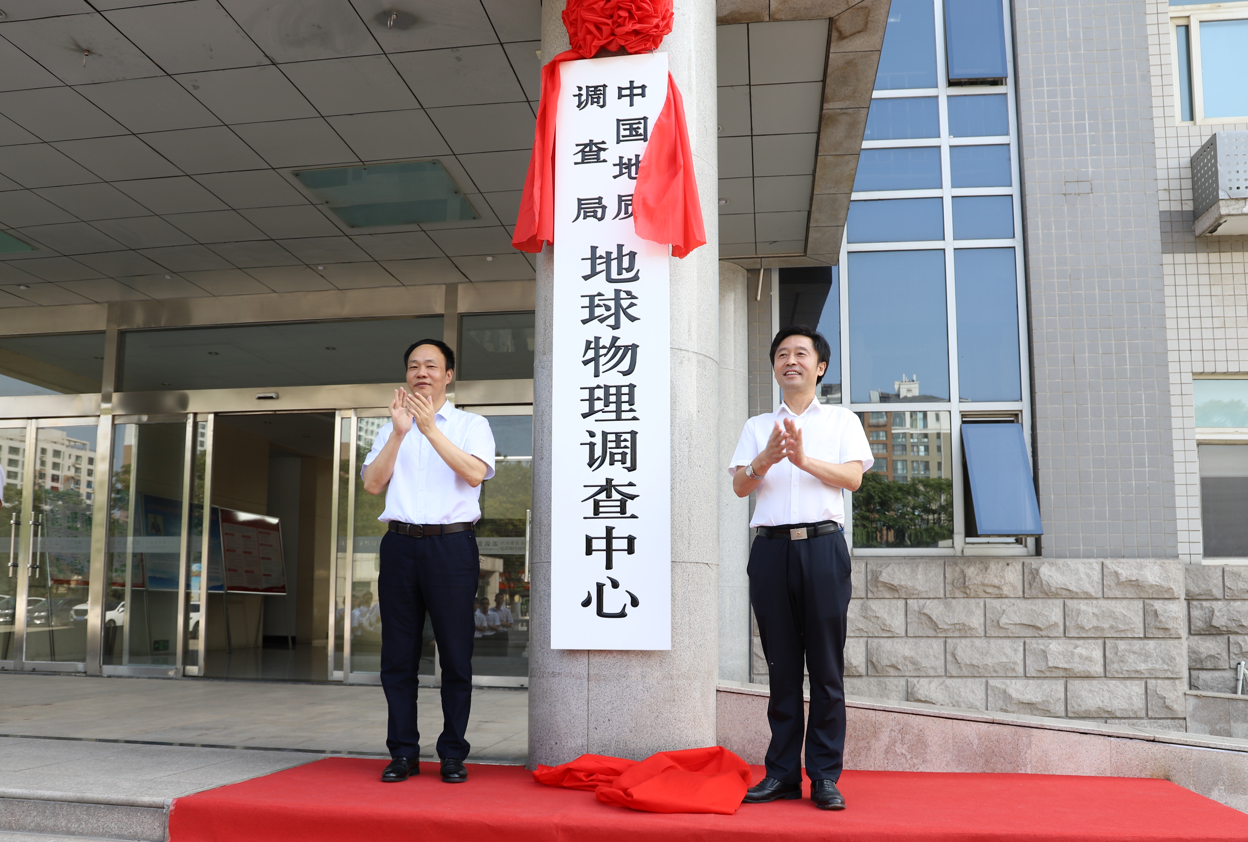 局指挥中心党委委员、副主任沈运华和地球物理调查中心主任、党委副书记路彦明共同为中心揭牌