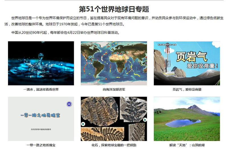 地质力学所外网创建了第51个世界地球日宣传专栏,包括科普获奖文章、科普书籍、科普课件、科普视频以及科普刊出文章等5大板块,展示了近年来所科研人员创作的近40个优秀科普作品。