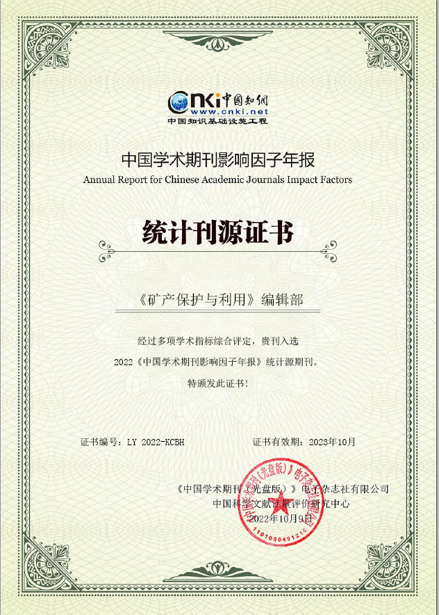 近日,由中国科学文献计量评价研究中心和清华大学出版社共同研制、《中国学术期刊(光盘版)》电子杂志社有限公司出版的《中国学术期刊影响因子年报(2022版)》正式发布。《矿产保护与利用》期刊各项指标均有大幅提升,多项指标名列前茅,并继续入选2022《中国学术期刊影响因子年报》统计源期刊。