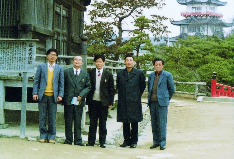 1983年9月与老师黄汲清院士(左2)等在日本仙台访问(中)。
